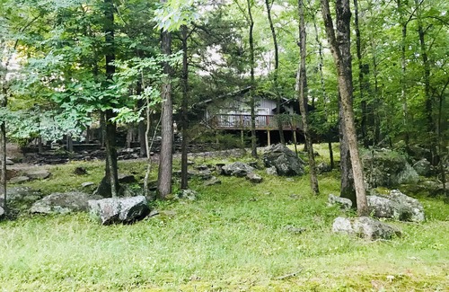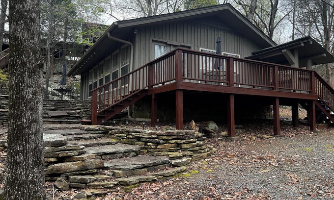 Located on picturesque Eden Isle, this newly renovated cottage offers a serene cabin like feel, filled with natural light, gorgeous wooded scenery and modern conveniences. Completely refurbished in Spring of 2019. Sleeps 6. 1 bedroom with 2 Queen beds and a Queen sleeper sofa in the main living space. Amenities also include 1 1/2 bath, kitchenette with appliances, washer/dryer, deck complete with 2 tables plus seating and an outdoor fire pit. All this located within a 5 minute drive to the Eden Isle Marina or a 10 minute drive to the Heber Springs Marina.