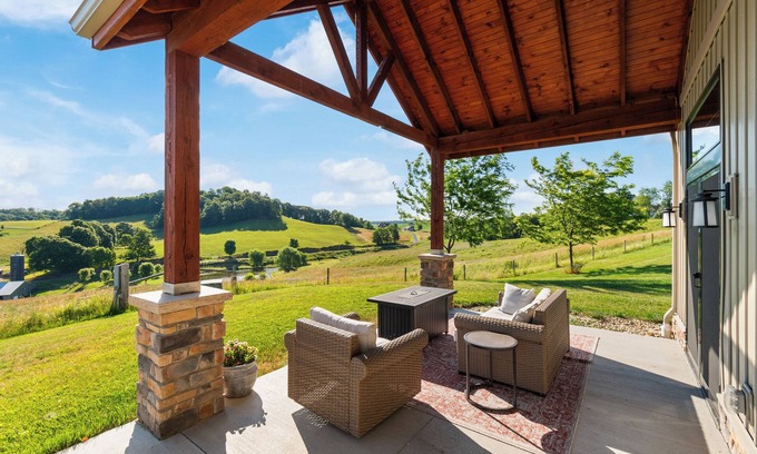 There is no better place to stay in Amish country than Heritage Hill Cottage. Located on a hilltop, this space offers sweeping views of the surrounding area. Theme is equipped with a full bedroom, kitchen and bathroom with an amazing outdoor space.