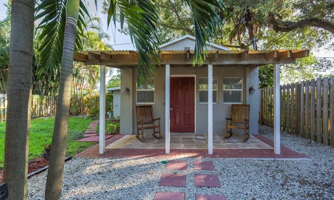 Charming private cottage home located in The Oaks. The bedroom has a queen size bed and TV, the kitchen is fully functional, the living room has a TV and pull out couch. The yard is privately fenced and equipped with a gas grill and lovely rocking chairs for you to enjoy. Complimentary onsite parking for 2 cars. Other amenities include WIFI, Netflix, Amazon Prime & VUE TV. Just 3 miles to the airport, everglades cruise port, Las Olas, Downtown, & 4 miles to the beach. Min age 25. *NO SMOKING*