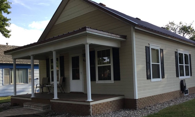 Our recently renovated 1919 cottage in St. Paul, NE. is an easy 4 block walk to the Sixth Street Vinnu, Loup River Distillery, St. Paul Civic Center, and just 2 blocks from Sts Peter & Paul Catholic Church. The living room has a comfortable sectional and 42” Smart HDTV. The king bedroom is spacious with a walk-in closet and a 50” HDTV with Roku. The home office has a desk with monitors, Ethernet cord, key board and mouse. The love seat pulls out to a twin bed for a child. The Cottage also includes a full kitchen, walk in shower, laundry room, and fenced back yard patio. Your behaved pets under 25 lbs are welcome!