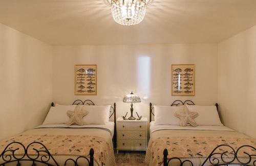 As the day comes to an end, venture down the beach steps to the bulkhead- a perfect spot for twilight conversations, marshmallow roasting, and gazing at the starlit sky. The sounds of the ocean and crackling fire provide a serene backdrop to your evening gatherings. At the end of the night, retreat to one of the two cozy bedrooms, each offering a peaceful sanctuary for a restful night's sleep.