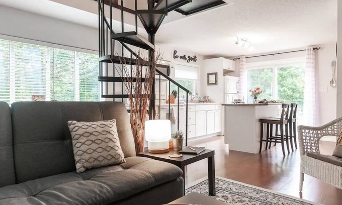 Two story, loft apartment with a country feel located on a rural road on the outskirts of Waterloo close to St. Jacobs (9.3 km), St. Jacobs Farmers Market (6.3 km), The Boardwalk (6.4 in), Conestoga Mall (7.9 km), RIM Park (10.8 km), Laurel Creek Conservation Area (5.4 km) and a 10 minute drive to the University of Waterloo (4.8 km) and Wilfrid Laurier (9.1 km) A vehicle is highly recommended for our location. Nearest bus stop is a 2km walk.