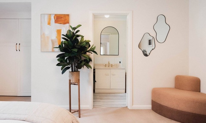 Here you'll find everything you need to relax in style. Full kitchen including oven, microwave, fridge, toaster, kettle and all the bits you need to cook up a storm as well as an outdoor BBQ area. The lounge has a TV with apple TV, air-conditioner & wood fireplace so you are sorted for all seasons. Both bedrooms have massive king size beds, built in robes and ensuites with shower and toilets.