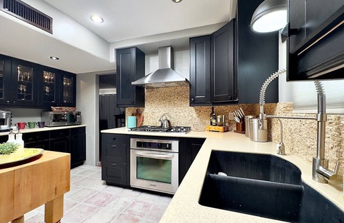 3 bed, 2 bathroom house with a classic, tasteful interior design. It's a home away from home. Comfortable, peaceful and safe house with a gated and lockable front entrance and two car garage. The 8ft high courtyard walls provide complete privacy from the outside neighborhood.
