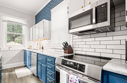 The Cozy Cobblestone welcomes you with original architectural details, updated comforts, and a warm, inviting atmosphere. Large windows let in ample natural light, while hardwood floors and curated décor make the space feel cozy yet refined. Enjoy coffee on the back porch, unwind in a private backyard retreat, or take a peaceful stroll around the block—you’ll feel instantly at home.