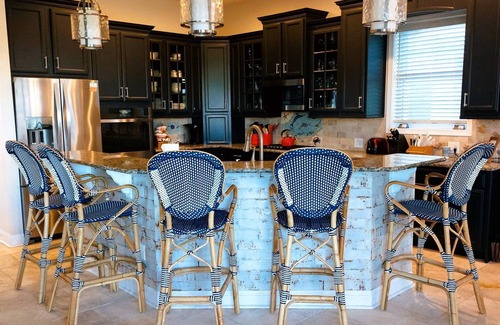 With accommodations for up to 17 guests, this expansive three-level home features an elevator for easy access to all floors, 9 and10-foot ceilings, and over 4,000 square feet of beautifully designed living space. The decor blends an eclectic coastal vibe with a fresh contemporary flair, creating a laid back, relaxed atmosphere. In addition, the home is fully turnkey with keyless access. It includes linens and bath towels (please bring beach towels), with all beds made ready for your arrival with comfortable pillows and mattresses for that just-like-home feeling.