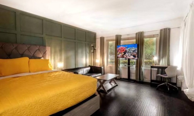 The Stylish Master bedroom includes a comfy King Size bed with a sofa couch and remote workspace. The bedrooms include queen beds to accomodate the whole family. The bedrooms include soft pillows, private closets, night stands and and windows with natural sunlight.