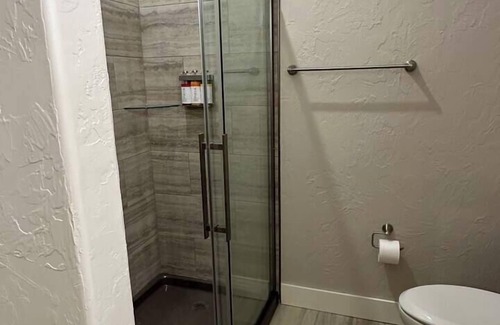 Enjoy easy access to popular shops and restaurants from this charming place to stay. Directly across from the Pioneer Woman Boarding House--step down onto the Historic Pawhuska Main Street to shop to your hearts content, or sit on our patio below the Majestic Osage County Courthouse and sip your iced tea. Please note that from the front entrance, 2 flights of stairs must be climbed. There is also a back entrance that does not require stair climbing. This hotel room has a king bedroom and its own clean full bath with shower. From the front of the building, two flights of stairs must be climbed. There is also a rear entrance that does not require stairs. The Cross Bell Downtown is located in the Pawhuska Historic District and was originally built in the early 1900s. It was an office space above, and a retail space below. We are directly across from the Pioneer Woman Boarding House, and have a prime location to watch the parades and events below on Kihekah from our shared front room. Parking can be obtained both in front of the building and to the rear. If coming in the front door, two flights of stairs will need to be climbed. If entering from the rear of the building on the patio, guests can either access the building from the Historic 6th street staircase to the Osage County Courthouse or come across the driveway behind P-Town Pizza. We recommend that guests that have difficulty walking or climbing stairs enter from the back. We are happy to meet our guests and help transfer luggage from your vehicle to your room.