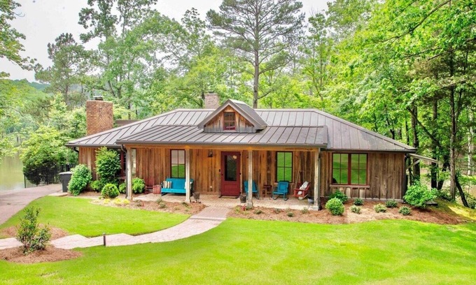 Welcome to our enchanting lakeside cabin, a perfect escape for groups. Nestled in serene seclusion, our cozy retreat offers endless acres for play and adventure. Inside, discover a fun-filled foosball table, a charming bunk room, and multiple inviting fireplaces. Start your day with coffee on the porch, enjoy fishing on the lake, or unwind with a nightcap. Host a BBQ on the grill, roast s'mores around the firepit under the stars, and create lasting memories during game weekends, retreats, or romantic getaways. Although it feels like a secluded paradise, you're only a few miles away from Oxford's vibrant activities and attractions.
