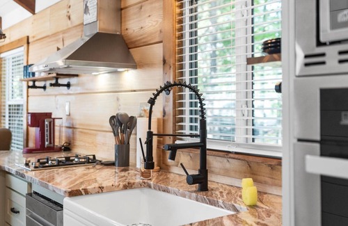 Inside, you'll enjoy a comfortable living area with smart TV, queen-sized sleeper sofa, electric fireplace, and a well-equipped kitchen with all needed items for meals/snacks and all appliances, large and small. We have a washer and dryer for your convenience, and complimentary wifi is available. The primary bedroom is on the main level and offers a king-sized bed with smart TV. Up a ladder into our loft, you'll find a queen-sized bed. There is a single bathroom with a large walk in shower.