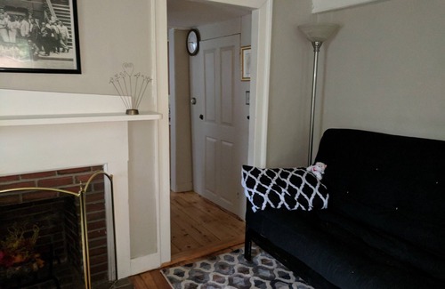 Come enjoy a getaway back in time to help you forget about all the stress of your life! Bedroom/living room apt, sleeps 4 - 1 double and 1 twin bed, futon couch. Full kitchen, full bath, private porch in 1743 house. Gardens, hiking, skiing, snowshoeing, pub, store. Equestrian farm, rural area near cities/airport. Easy drive to White Mountains, beaches, ocean, Pawtuckaway State Park, Canobie Lake, Boston, Manchester, Portsmouth, UNH. Near rec area, trails, swimming, covered bridge, playground, waterfall, music, Robt Frost farm. Furnished, wifi. Happy to recommend fun spots. Game closet. Books and art supplies. Cable TV, air-conditioned.