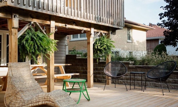 Welcome to the Dainty Petunia! She's quirky, colourfully eclectic and designed with good times in mind. Nestled right in downtown Picton (PEC's charming historic neighbourhood) - you're a 5 min walk to amazing restos, coffee shops, and boutiques. We just added a beautiful, state of the art sauna to the backyard. It is shared with the unit upstairs and guests can book off time to use it privately.