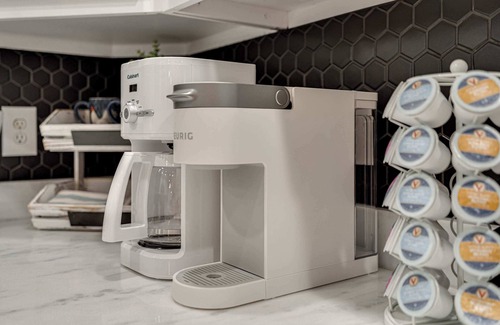 It is a private guest suite located behind our main house. As you walk in through the charming front porch, you'll discover the newly updated chef's kitchen featuring beautiful granite countertops and stainless-steel appliances. We provide both drip and single-serve coffee makers, coffee supplies, a toaster, and all the essential items for cooking.