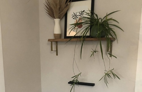 The master bedroom has been tastefully decorated and features a large king bed with luxuriously soft bedding. There is a smart TV with access to all your favorite streaming services. A fan overhead will keep you cool in summer and there are multiple charging stations to keep your devices running smoothly.