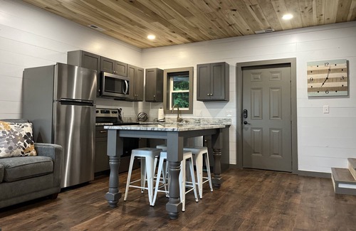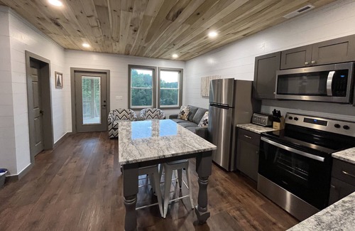 If you are looking for a lake house with peace and quiet, but on the water, look no further. Day Dreamer is a Brand New 2 bedroom / 2 bathroom lake house located on the Smith Lake with year round water! Our dock is usually in 15+ feet of water mid-march through mid-September, and 3 feet water in offseason. However, water levels cannot be guaranteed. Upon arrival , you will notice the front / back porches with plenty of seating options to enjoy nature and looking at the water. Located on the left side of the house is parking for two cars. The outside of the lake house also has a park grill.