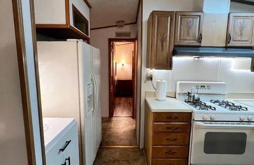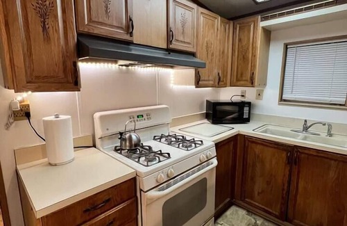 Welcome to your cozy home away from home! This charming cottage has two bedrooms, each with a comfortable queen sized bed, and a queen-sized sofa bed in the living room for two additional guests. Enjoy the well-equipped kitchen with a fridge featuring an ice and water dispenser, a stove with oven, microwave, toaster, electric kettle, two coffee makers, and all essential utensils. The cottage has a single bathroom and a quaint dining area to make meals feel even more special.The master bedroom and living room both have Roku-equipped TVs, perfect for streaming your favorite shows.