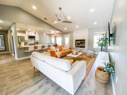Providing a garden, The Desert Sun - Amazing Private Villa For You provides accommodations in Twentynine Palms. A hot tub is available for guests. The villa also offers free Wifi and free private parking. Offering a balcony and mountain views, the villa includes 5 bedrooms, a living room, flat-screen TV, an equipped kitchen, and 2 bathrooms with a hot tub. Towels and bed linen are offered in the villa. The accommodation has a fireplace. Palm Springs International Airport is 43 miles from the property.