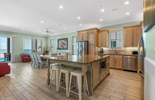 Diamond is a 10 bedroom family-friendly luxury beach home located directly on the beach in an exclusive, gated community with zero-entry pools. Handicapped accessible features. Elevators. Firepit. The perfect vacation home for large groups, or small ones that like lots of space!