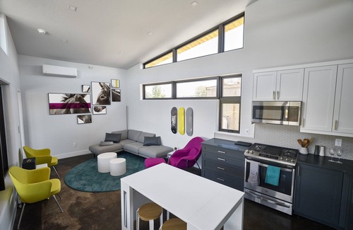 This vacation home is brimming with charm and playful touches. Inside, you'll find a bright, open-concept kitchen and living area, tastefully designed with modern décor and creative artwork. Two cozy bedrooms and one full bath make this space ideal for families or small groups seeking a relaxing, carefree retreat. A collection of board games, card games, portable music players and other entertainment ensures plenty of opportunities for shared fun and laughter indoors.