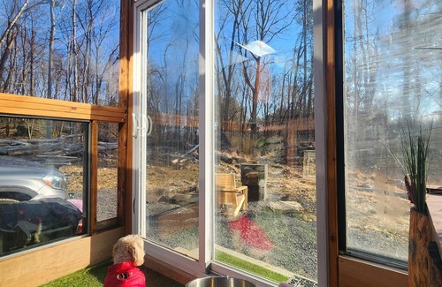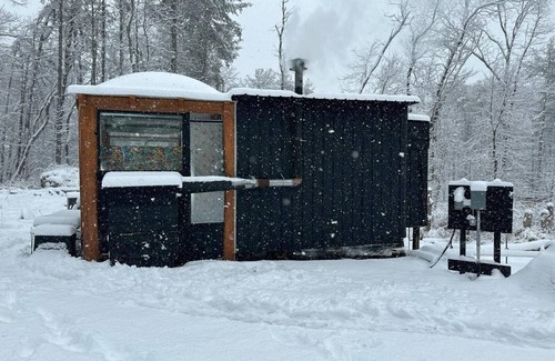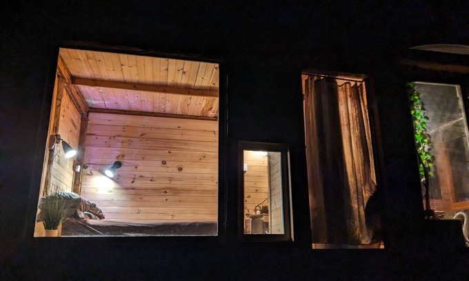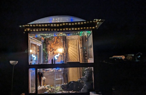 **Its a tiny house in the woods. Built on a 24 ft trailer and half the trailer is a insulated warm living space and rest is a glass dome with panoramic views.