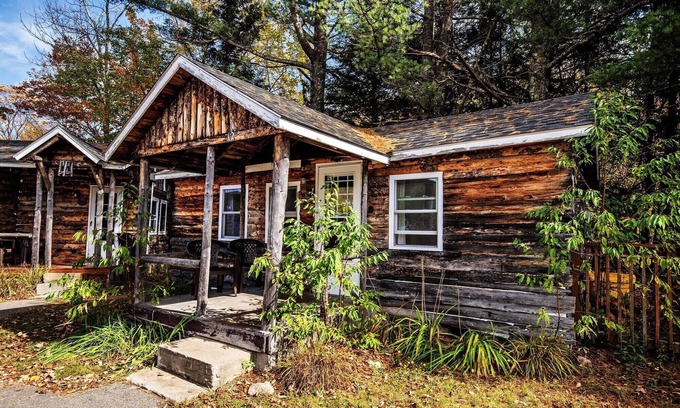 Eagle Cliff, a two-bedroom riverside cabin, sits directly on the banks of the Pemigewasset River. This rustic retreat offers a peaceful setting surrounded by the natural beauty of the White Mountains.