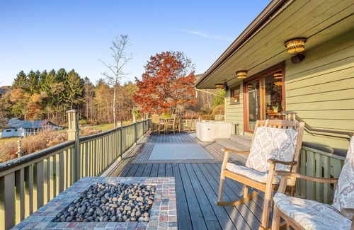 Experience The Eagles Nest in Ellicottville, a private 2-acre retreat with stunning views of Holimont Ski Resort. Enjoy the heated pool (seasonal from May 1 - October 15), outdoor hot tub, fire pit, and the best sunrise in Western New York! This two-bedroom getaway offers a full kitchen, washer/dryer, and plenty of space for families or couples. Perfect for year-round relaxation or adventure, it stands out with its privacy, space, and serenity.