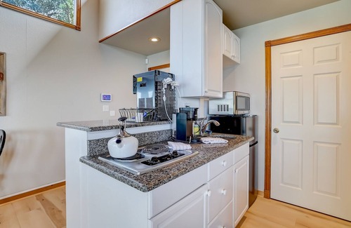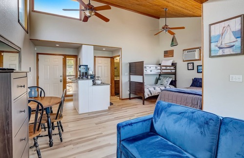 As part of the Cool Water Cottages, The Eagles Nest offers fun-filled lakeside living for you and your loved ones! Whether you're hanging out inside or outside, rest assured that the memories made here will be priceless. Boasting an open-concept layout, family time is inevitable. The stay's well-equipped kitchen comes prepared with stainless steel appliances and granite countertops. The plush sofa in the living area presents a comfortable place to sit and watch your favorite TV shows and movies on the large TV. And the beds are ultra cozy with their plush linens and the cottage's central air-conditioning.