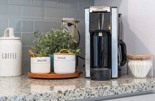 Fully equipped kitchen featuring stainless steel appliances, coffee bar, and all cookware necessary for breakfasts, beach picnic lunches, or dinners.