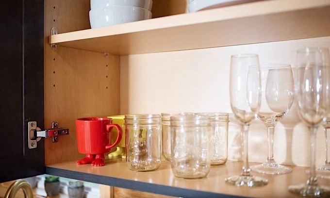 Cook your heart out in a stunning kitchen complete with quartz-style countertops, a gas stove and oven, deep sink with modern gold fixtures, a full-size fridge, and cabinets stocked with the essentials. Coffee maker, toaster, and utensils are all provided.