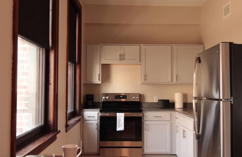 This studio comfortably sleeps 2 people on a king size bed. Spacious open living area offers original flooring, high ceilings, large windows with lots of natural light, and tons of character. Our modern kitchen boasts granite countertops and stainless-steel appliances. Convenient in unit washer and dryer are provided. Bring your pet along for your adventures in Winona. Wi-Fi included. In walking distance to local attractions, coffee shops, restaurants, brewery, bars, movie theater, parks and walking/biking trails, Mississippi River, Winona State University and more!