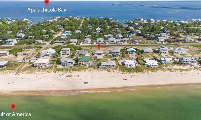 Experience breathtaking Gulf views and refreshing Gulf breezes from the stunning front porch of The Extra Mile. This impeccably maintained residence in the sought-after West Gulf Beaches community is the ultimate island retreat. Just steps away from the beach, accessible via a convenient path right in front of the house. Relax on the spacious screened porch after a day of adventure. The home's well-designed open floor plan offers a comfortable living space for the whole family, with two bedrooms located at opposite ends of the house for added privacy, each with its own bathroom. The modern kitchen is perfect for preparing meals while still being part of the action. Whether you're enjoying the waves and collecting seashells on the pristine sandy beaches, exploring the island on a bike or paddleboard, or simply unwinding on the deck with a good book and a cold drink, The Extra Mile provides the ultimate Forgotten Coast experience. Outside, you'll find covered parking, an outdoor shower, a fish cleaning station, and a grill.