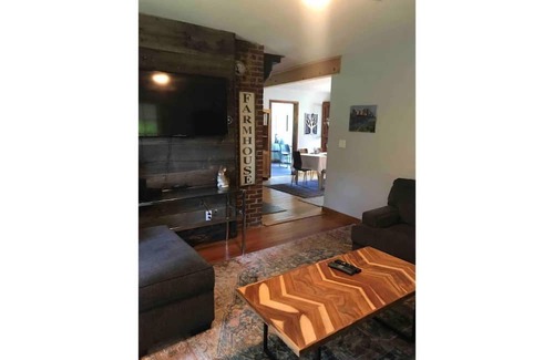 The Farm is a cozy home with a new wood stove (with a fan) in the dining room open to the living room. Off the first floor bedroom is a door to a HUGE deck, hot tub and gas grill. There is lots of seating indoors and out and a lovely front porch. The farm has a nostalgic feel with new amenities. There is NO on street parking. The parking area will hold 4/5 cars and when there is no snow it is ok to park on the lawn.