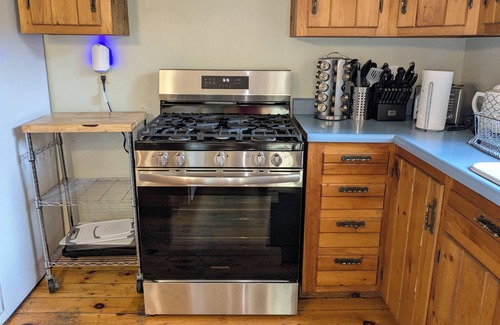 The patio has Adirondack chairs with a firepit looking out over the expansive lawn and a grill to prepare outdoor meals. Just down the street is access to Bryant Pond (Lake Christopher), a quiet, beautiful lake great for kayaking, canoeing, or paddle boarding. Your rental includes the use of kayaks that can be carted down to the lake.