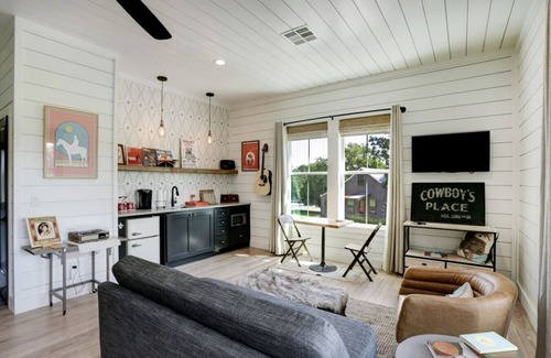 Welcome to the Lone Star Farmhouse—your ideal retreat less than 2 miles from downtown Round Top. This unique 3-bedroom home features three private suites, each with its own bath and kitchenette.