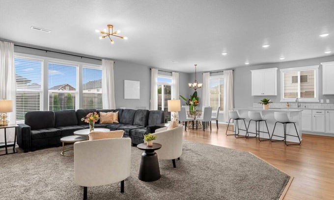 Have fun with the whole family at our stylish place. Our home has 4 bedrooms (King Bed, 2 Queen Beds, 1 Full over Full Bunkbed), 2 full bathrooms, and an oversized living room. Enjoy a night on the peaceful patio or in the kitchen cooking your favorite dish. Our home is conveniently located right in the heart of wine country, just a 7 min drive to Red Mountain wineries and close to the Hanford site and I82.