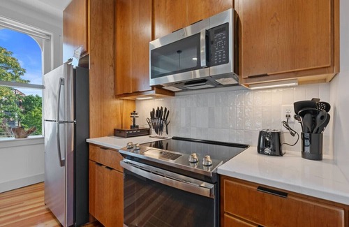 Indulge in luxury in this special, centrally located, and unique retreat with unparalleled natural light, high-end finishes, views of the neighborhood, and a fireplace.