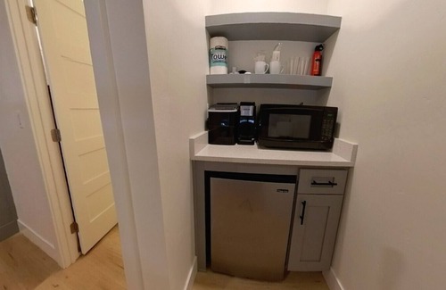 Unwind in your inviting room featuring a full-sized bed, large HD TV, mini fridge, and a standing shower. With our smart keypad entry, check-in is effortless and contactless, allowing you to settle in without a hitch.