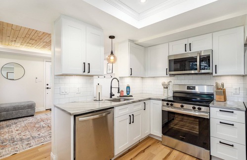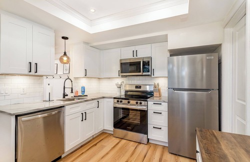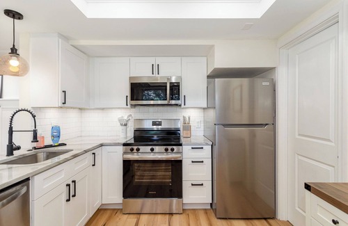 Inside, you’ll find a fully stocked kitchen with everything you need to cook, bake, or just brew a great cup of coffee. The apartment also includes private laundry, fast Wi-Fi, and thoughtful touches throughout to make your stay feel like home.