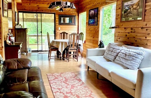 Your retreat from the hustle and bustle in the heart of the forest, while being close to town. This rustic and peaceful cabin offers a cozy retreat for guests. Nestled in a serene setting, you'll find comfort and relaxation here while living off grid. The cabin features 2 queen beds and 1 full bed, ensuring a restful night's sleep for everyone. One bedroom downstairs with a queen and a loft upstairs with the full and additional queen bed. With wood stove heating and nature all around you— your stay will be completely relaxing. We even have an incredible push button heater for chilly mornings when you want heat immediately. Immerse yourself in the marvelous surroundings and take in the natural beauty of the Pacific Northwest. Whether you're exploring the nearby hiking trails or simply enjoying a cup of coffee on the deck while watching the hummingbirds, this cabin is a unique getaway. Feel free to reach out to us during your stay - we're happy to suggest local spots to check out. Our cabin is conveniently placed in between Forks and the beaches (Mora, Lapush, etc). Unplug being the key word but we also want our guests to have options so our cabin does offer Wi-Fi … come here to refresh and walk away feeling renewed. The cabin is rustic - some things are a little quirky but we love it and hope you do too!