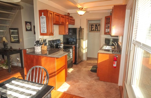 Inside, you will find a cozy home complete with a bedroom on main level and upstairs loft sleeping area, along with two full baths. The living area features a gas log fireplace on a timer for creating that perfect ambiance at night. Login to your Netflix or Hulu account on the Smart TV and enjoy binge watching a favorite show or movie. Fox Den offers WiFi for those that need to check email or plan a day adventure while on vacation.