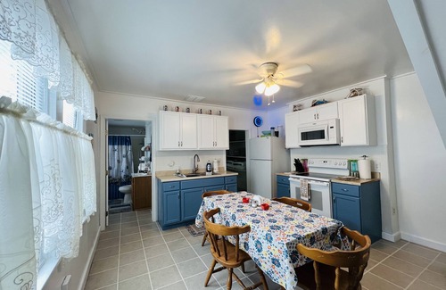 Welcome to Our Adorable Front Porch Cottage, Offering 2 levels of great comfort and all within walking distance to the Beach and Main Attractions in Colonial Beach VA! We are a Pet Friendly Cottage with a fully fenced in gated yard, shaded with a comfortable sitting area on The Front Porch. Come bring your pet and your family for relaxing and enjoyable Small Town Beach experience! The Cottage sleeps 4 , offers a comfortable Living Room with smart TV, Internet, Full Kitchen, Washer, Dryer, Full Bath with Tub Shower Combo and Two Bedrooms, one queen and two twin beds on the Upper level both with smart TV's. We are located 3 blocks from the Main Beach Attractions, Golf Cart Community and you may visit Colonial Beach Attractions to rent your kayaks, paddle boards, bikes and The Beach Center for your Golf Cart. The Cleaning Fee includes full linens for bedding and bath for your Rental. The Kitchen is supplied with everything you need for a comfortable stay!