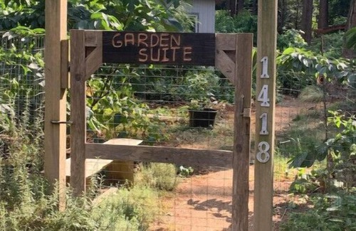 The Garden Suite is a very comfortable sleeping cabin that is off grid, yet does have electricity (solar) and wifi.