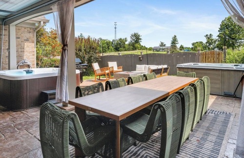 Fenced-In Patio with 2 Hot Tubs + Fire Table + Dining Table + Grill