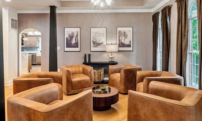 The Gathering at Old Frankfort is a refined retreat in the heart of Kentucky’s Bourbon Trail. Set on 1.5 scenic acres, this two-home estate sleeps 20 and features designer interiors, chef’s kitchen, two hot tubs, a private movie theater, and elegant spaces for connection and rest. Just minutes from iconic distilleries, it’s where luxury meets laid-back fun. This is your group’s dream retreat — bourbon under the stars, cozy beds, and zero boring moments. Gather, sip, stay, repeat.