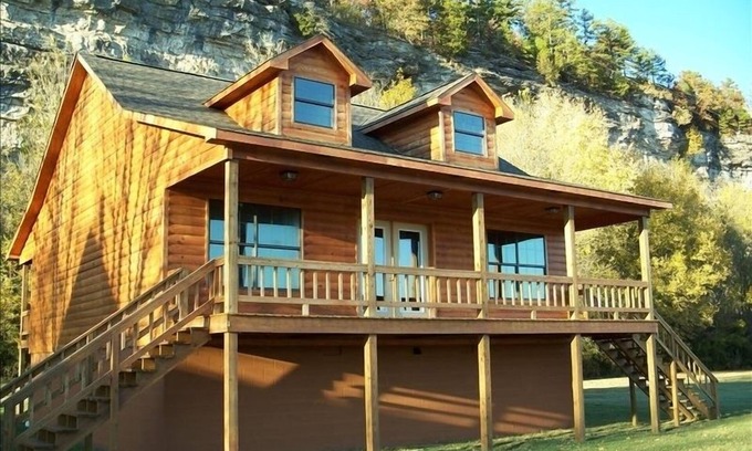 Enjoy the luxury of hearing the White River flow by relaxing on our cover deck. This very spacious cabin has 1 master bedroom with two comfy queen size beds, a loft with a queen size bed along with a single bed and in the living room with a pull out queen sofa bed. 1 full bath on main floor and a 3/4 bathroom in the loft. This wonderful Cabin is located just outside the quaint little town of Calico Rock, AR. However, the first thing you will notice is the amazing views, views, views! This cabin sits next to the world famous White River, which flows right out the Cabin's back door. While the front of the home overlooks stunning rock bluffs. Upon arrival you will feel right at home and all your worries and stresses will disappear.