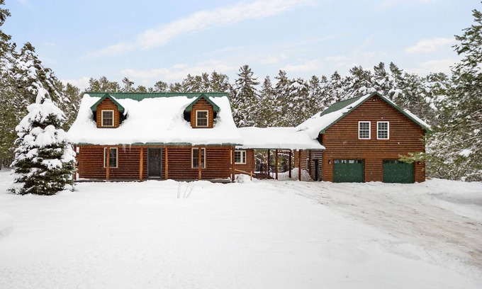 Imagine an escape from the hustle & bustle where you're immersed in the tranquility of a secluded countryside cabin surrounded by serene evergreens. Newly renovated & all new amenities, this home+garage+loft apartment features 4BR (1King/3Queen), 3full baths, 4mattresses, sofabed and 2kitchens. Enjoy the outdoor Hot Tub! Snowmobile Trail directly behind Cabin! Only a few miles away to ATV trail access! Convenient location near town. Plentiful parking & 2 stall garage. The getaway you deserve! There are three options to book: The Cabin, The Loft, or the whole property (Cabin and Loft). Getaway in the Pines is the whole property.