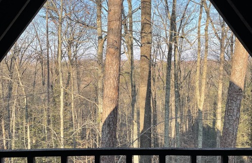 Take a break & unwind in this A-Frame cabin, bordering 45 acres of woods with a new private extended deck. This rustic log cabin is rural & an escape from busy city living. 2.6 miles to Cave Run Lake and the National Boone Forest. Short drive to the Red River Gorge.