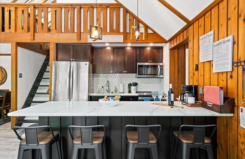 Inside our home, you will find four bedrooms and two and a half baths. The main floor has 3 bedrooms, 2 bathrooms, and an open concept dining room, living room, kitchen, and sunroom. The master suite has a king bed, sitting area, TV, walk in closet and private bath. Bedroom 2 has 2 twin beds. Bedroom 3 has a queen bed. The kitchen has service for 12+ and is fully equipped including a toaster, coffee machine, crock pot, pots and pans, cookie trays and all the utensils that you will need. The island/breakfast bar seats four. The living room has a TV and Blu-ray player. The sunroom is perfect for early risers to drink coffee or tea, read a book and relax. It also has a TV and Blu-ray player. The upstairs has a loft with futon, bedroom with 2 twin beds, half bath and is the perfect sanctuary for children, tweens and teens. The bedroom has two twin beds and chalkboard. The loft has a futon. There is also a TV, PS4 with games and DVDs.