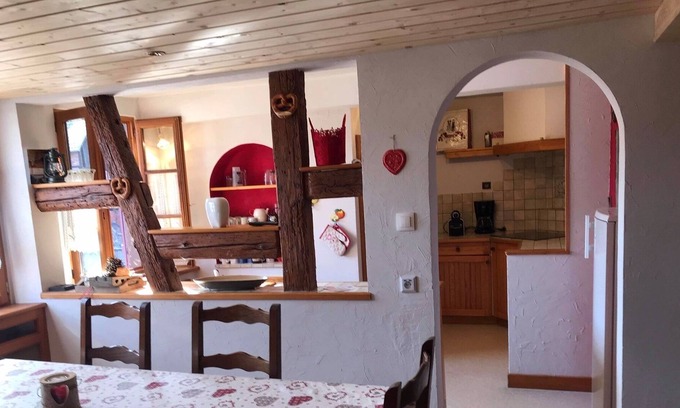The apartment, unique housing of this town house, has 3 bedrooms with 6 beds, a large living room upstairs and a dining room authentic and warm served by a beautiful kitchen and very well equipped .
