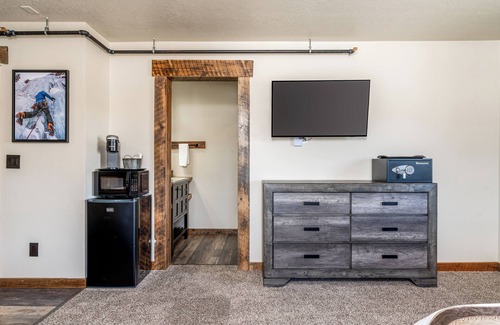 This luxurious Queen Suite will keep you cozy with its rustic charm. Enjoy its beautifully modern bathroom, two queen-size beds, and convenient amenities that include a mini fridge/freezer, a microwave, and a coffee maker. Just blocks away from the west entrance of Yellowstone National Park. This room is sure to have everything needed to make your stay perfect!